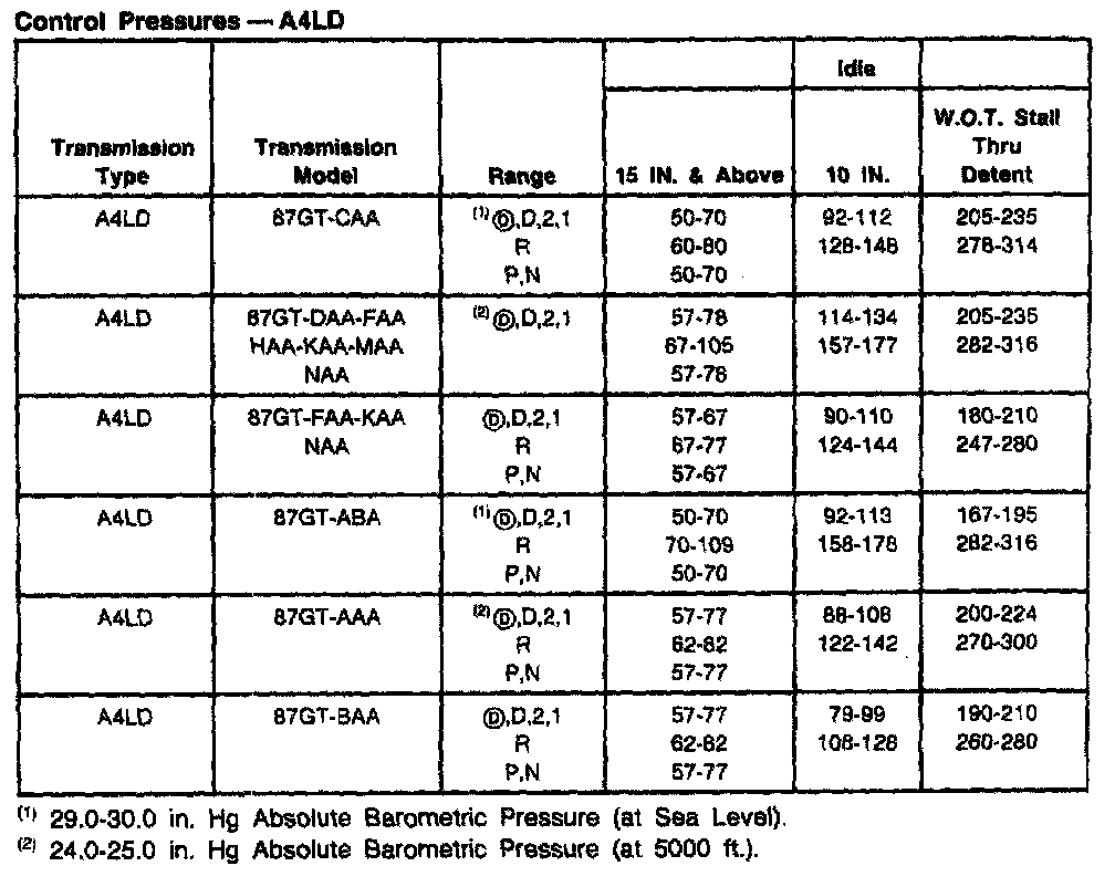 A4LD 4-spd A/T, Stall Speeds/Vacuum Diaphragm (All):