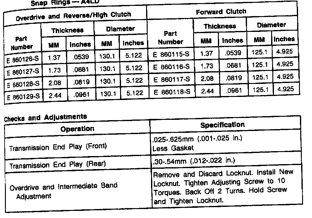 A4LD 4-spd A/T, Clutch Snap Rings/End Play Adjmts: