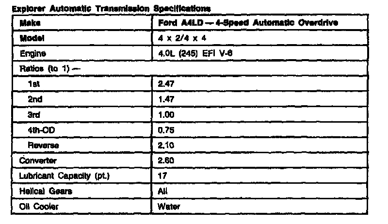 A4LD 4-spd A/T, Gear Ratios (Explorer):