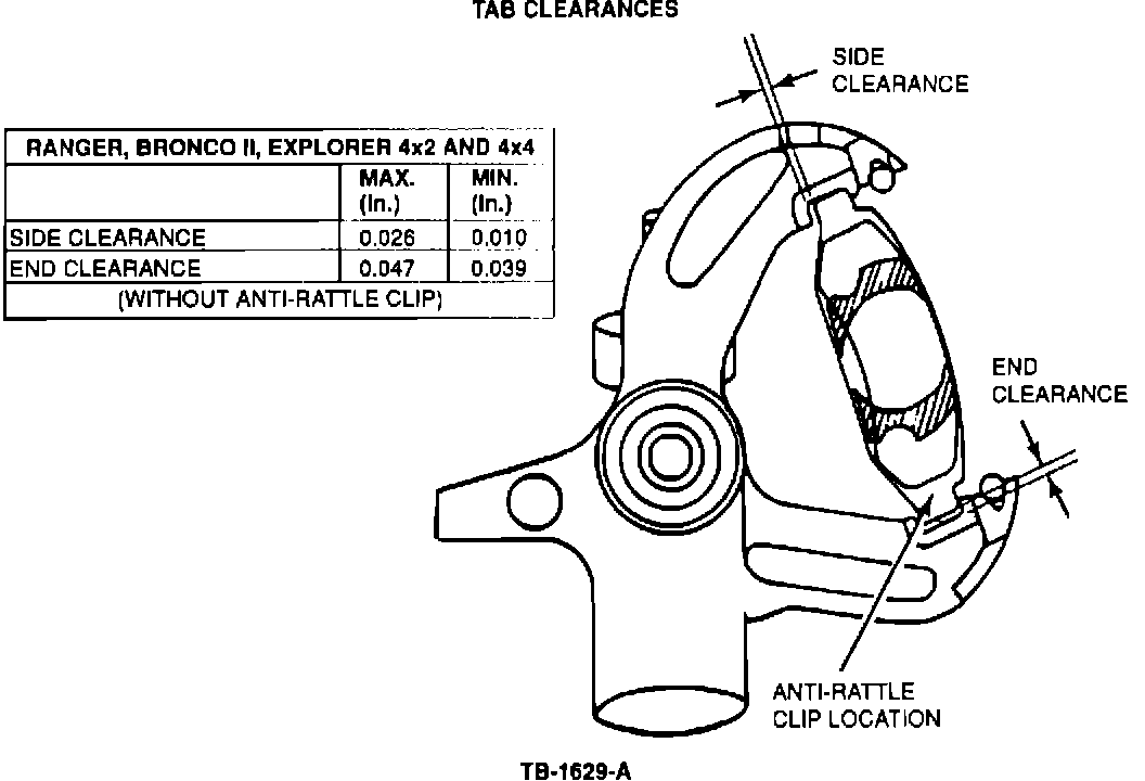 i. Check the tab clearances and install anti-rattle clip on the lower pad tab, Figure