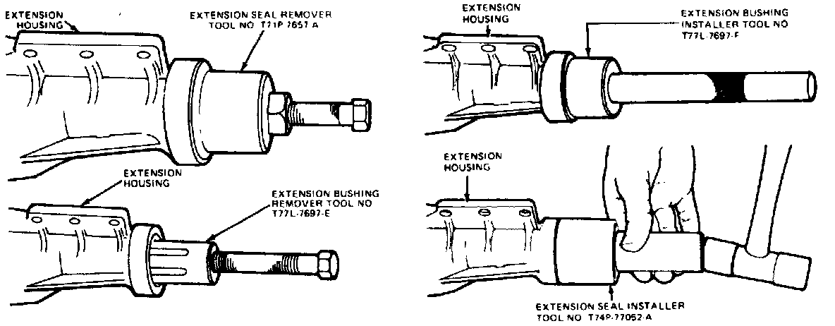 1. Using extension housing bushing replacer tool No. T77L-7697-F or equivalent, install new extension housing bushing.