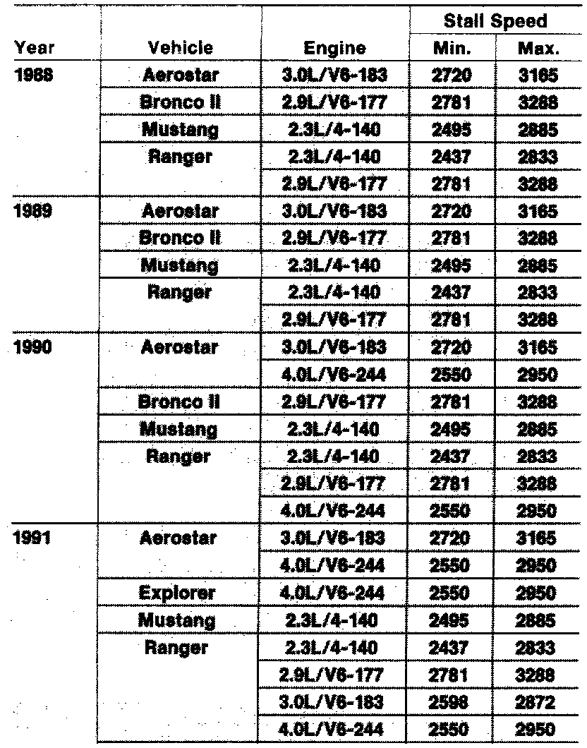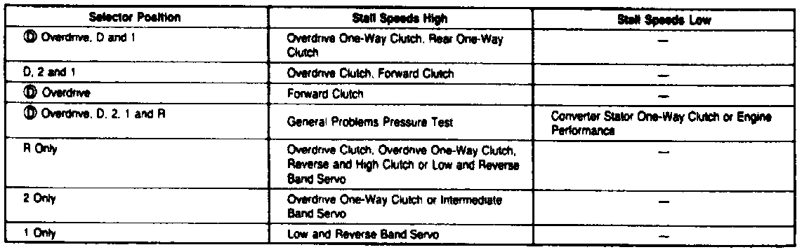 7. If stall speeds are not within specifications, determine cause from the Stall Test Diagnosis Chart.