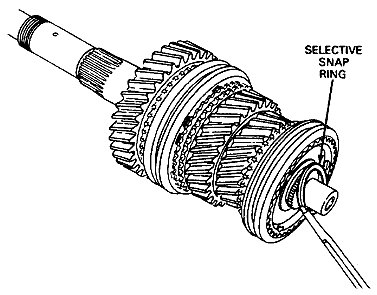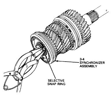 1. Remove the selective snap ring that retains the 3-4 synchronizer assembly to the mainshaft. A new snap ring will be used in the assembly.