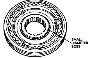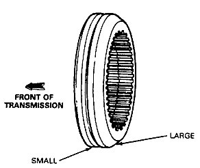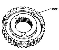 b. The rear of the 1-2 hub is identified by a ridge machined on the rear surface. The ridge must face the front of the mainshaft.