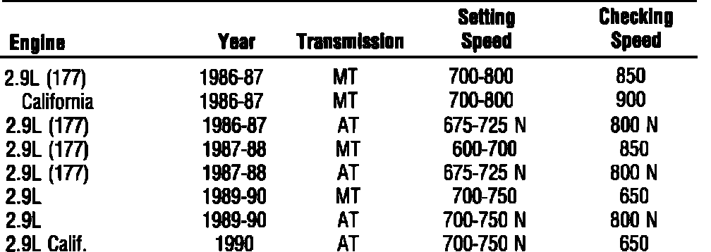 Idle Speed: Specifications