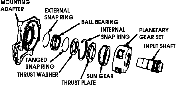 18. Install input shaft and planetary gear set in mounting adapter. Push the assembly into adapter until it is fully seated and the snap ring engages.