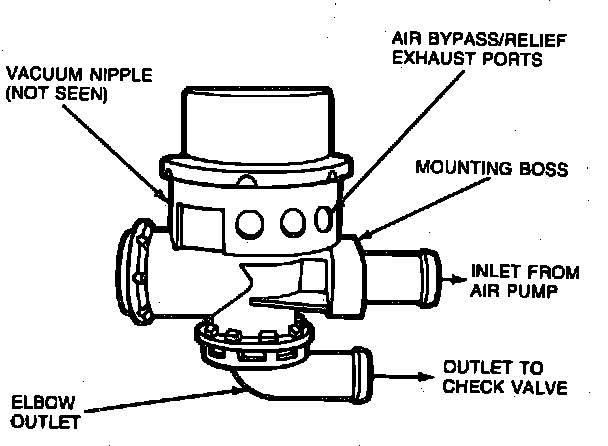 4. Disconnect the vacuum line, with the engine at 1500 rpm. Air at the outlet should be shut off, or significantly decreased. Air pump supply air should be felt or heard at the dump port or silencer ports.