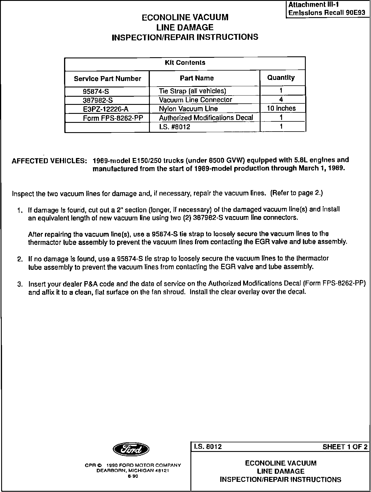 Econoline Vacuum Line Damage Inspection/Repair Instructions