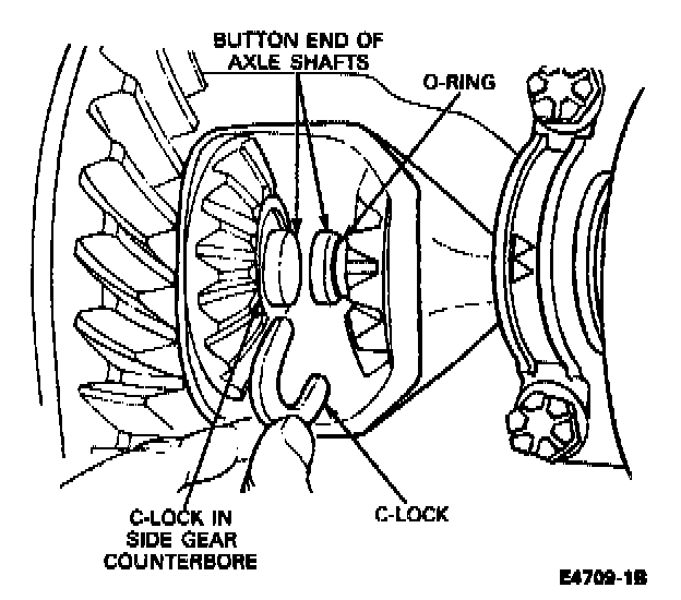 NOTE: A rubber 0-ring is used to hold the C-lock in position on the axle shaft. Be sure that the 0-ring is in the groove at the button end of the axle shaft before installing the C-lock.