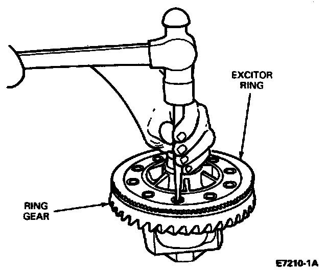 Remove the bolts that attach the ring gear to the differential case. Remove the ring gear from the case by striking at alternate holes around the gear.