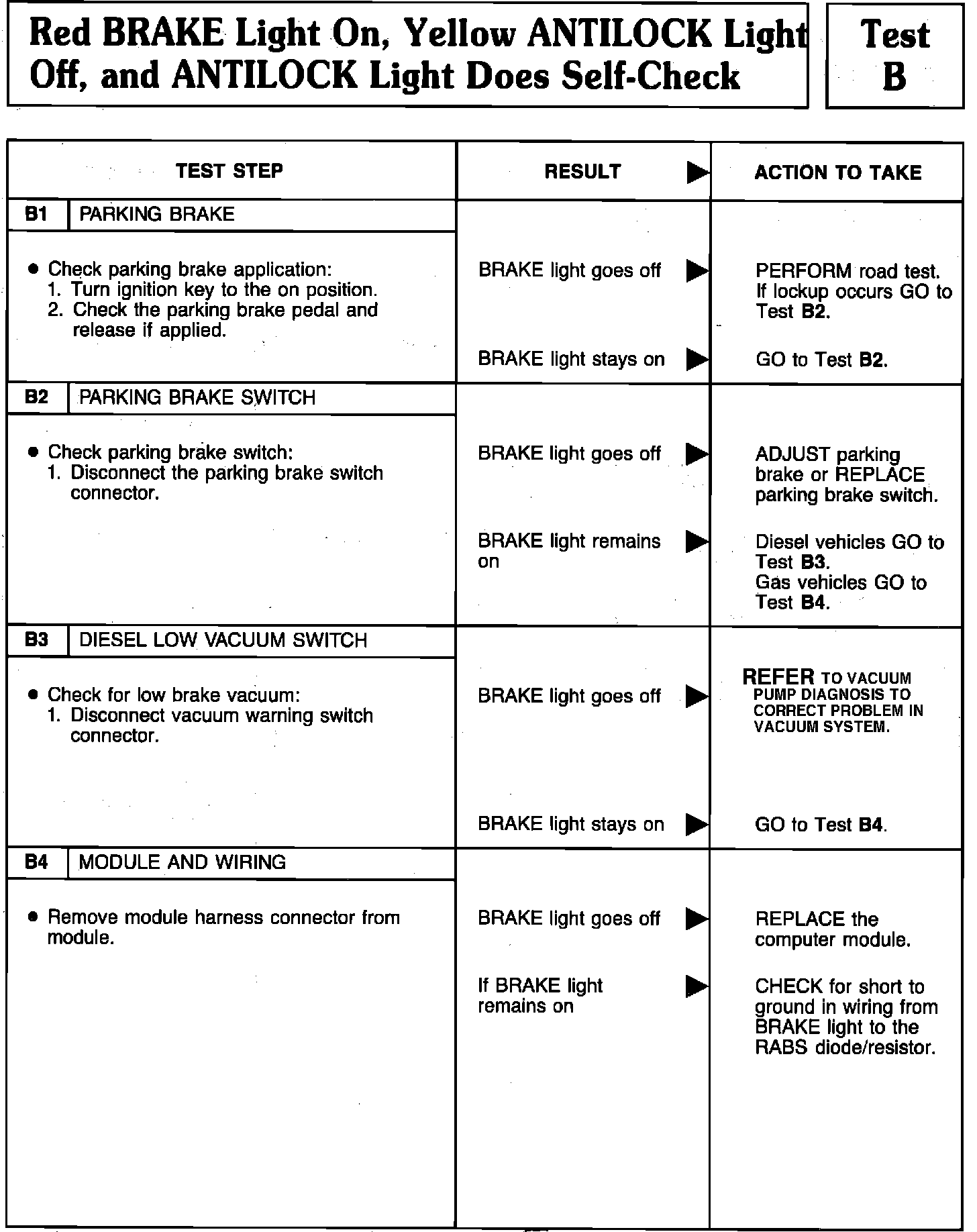 Test B Brake Light On, Antilock Light Off, No Self-Check