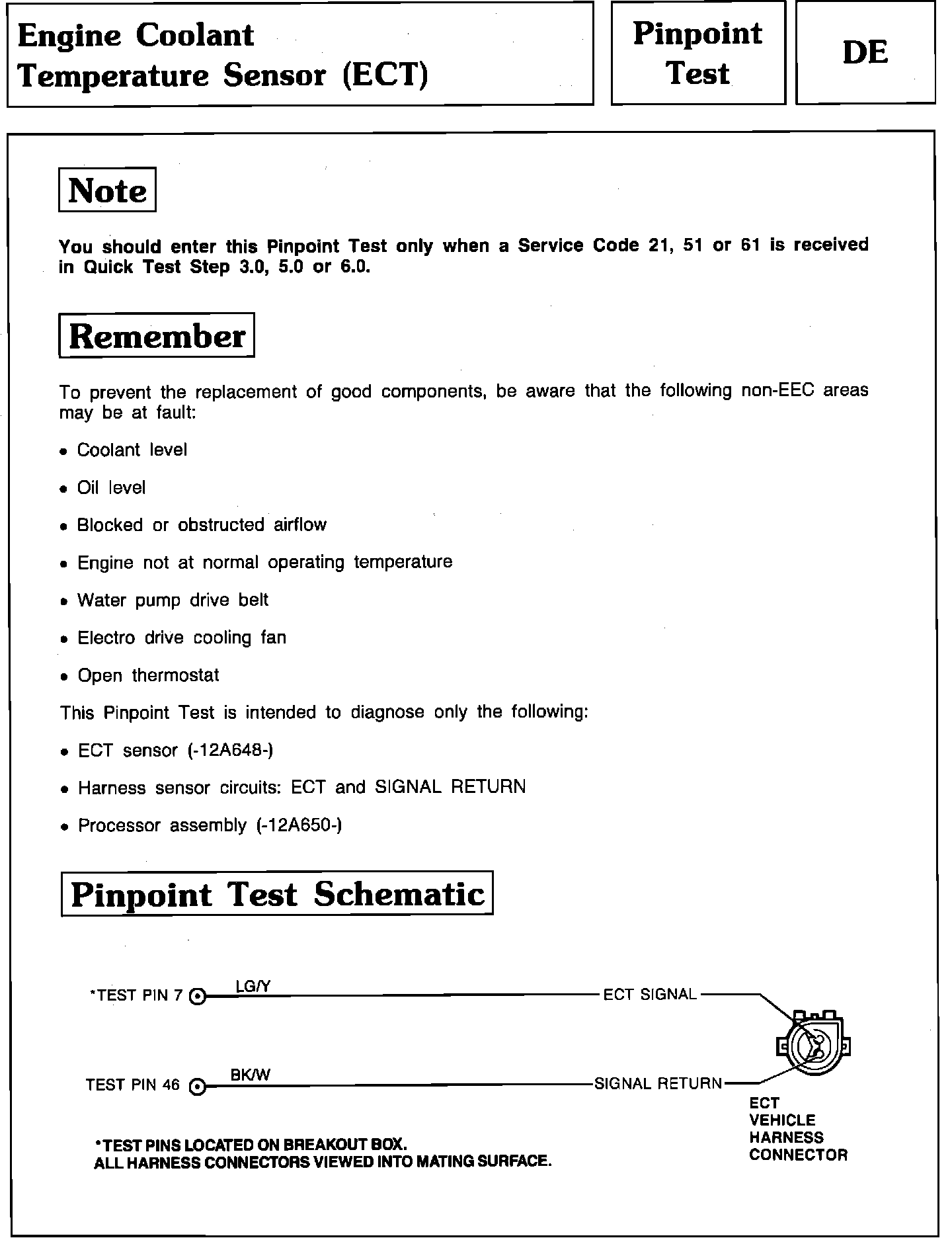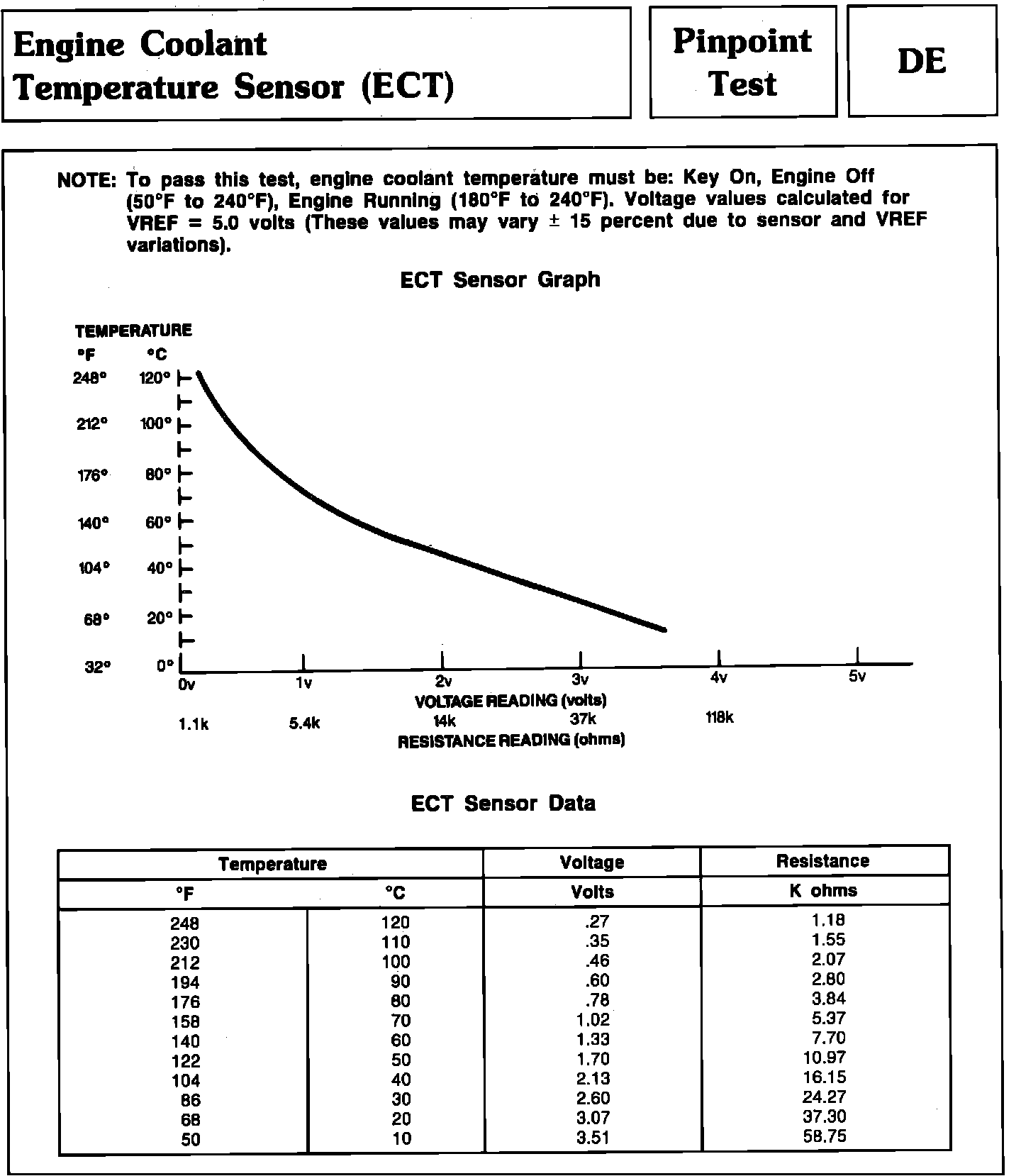 Pinpoint Test DE - Engine Coolant Temperature Sensor (ECT):