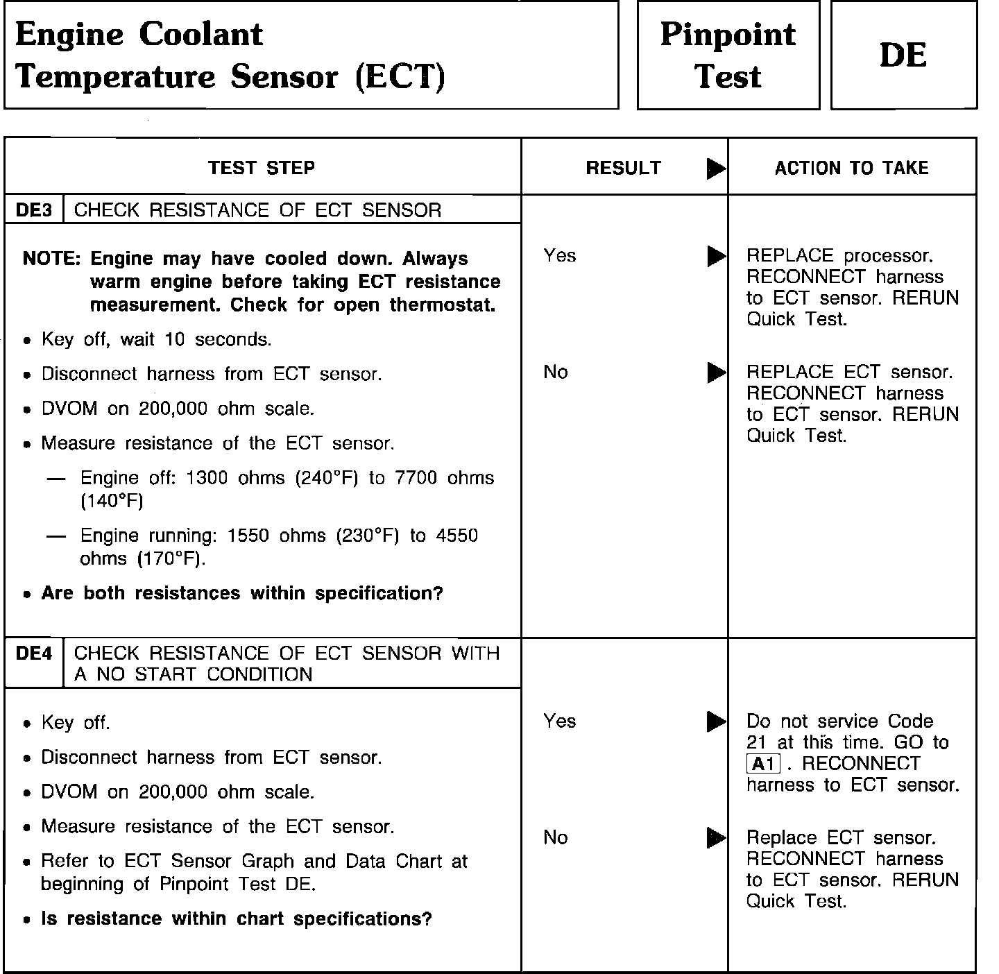 Pinpoint Test DE3 & DE4 - Engine Coolant Temperature Sensor (ECT):