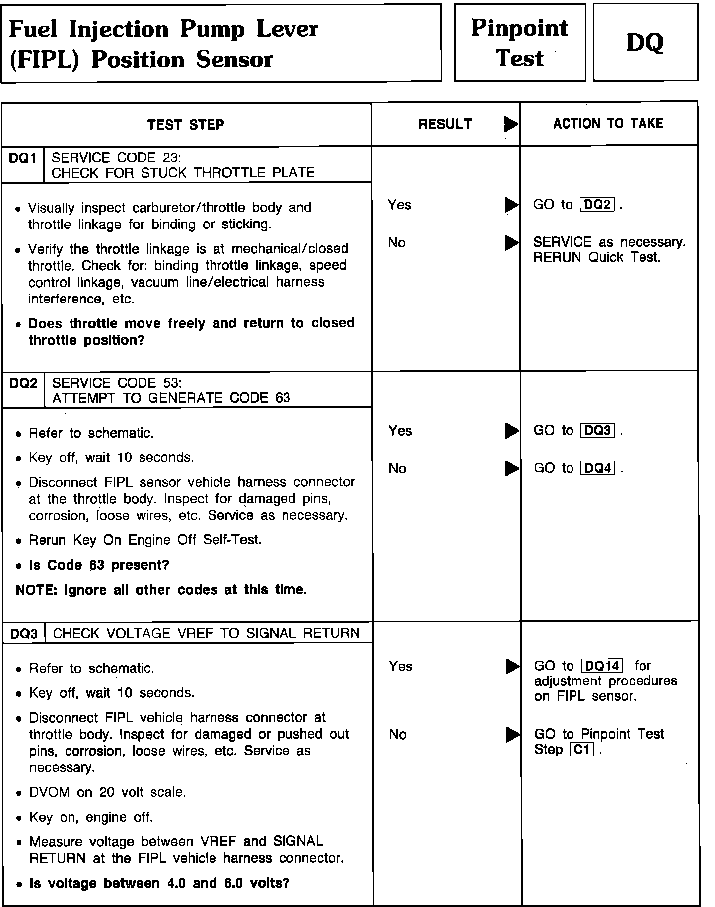 Pinpoint Test DQ1 thru DQ3 - Fuel Injection Pump Lever Position Sensor: