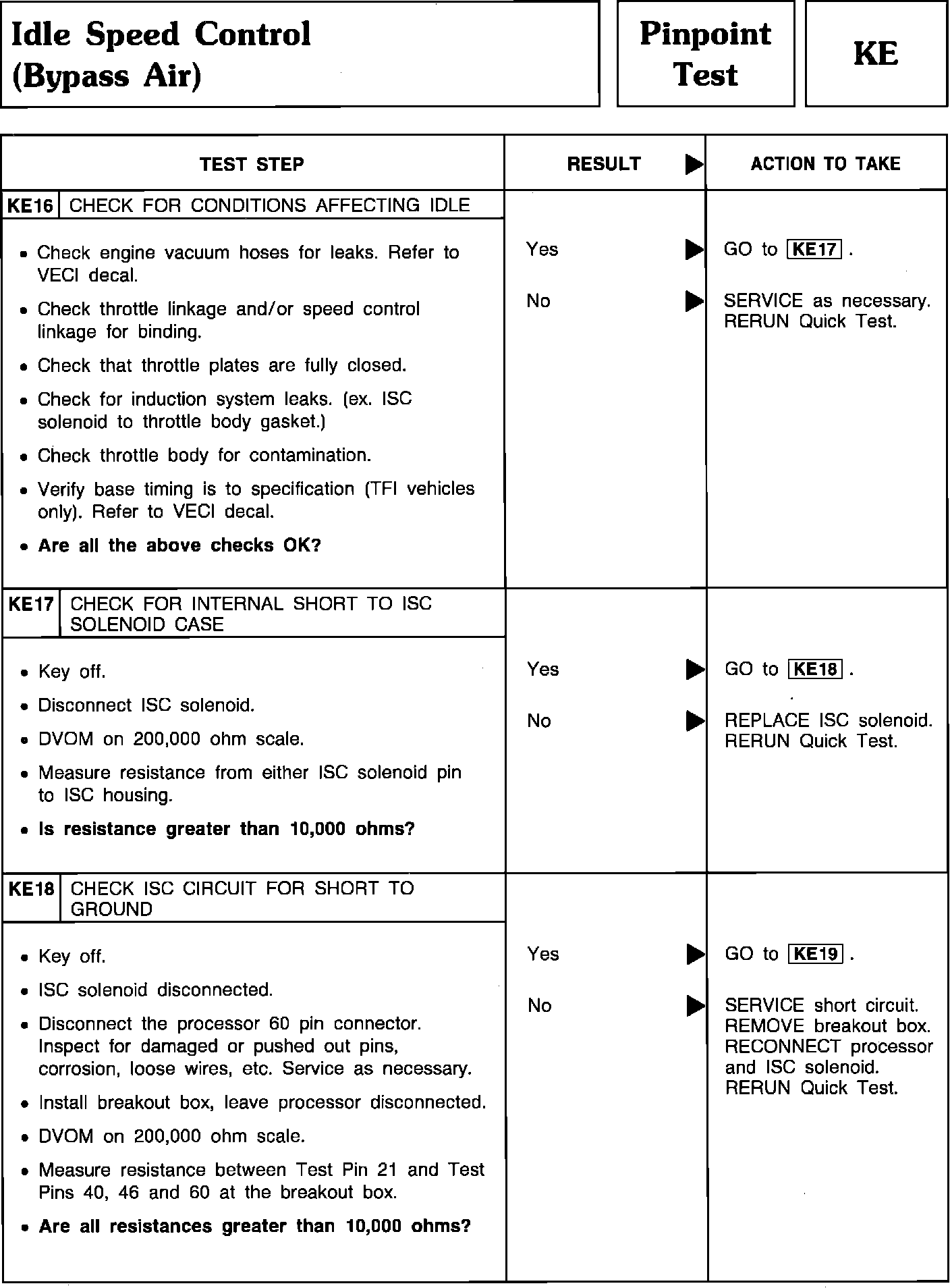 Pinpoint Test KE16 Thru KE18 - Idle Speed Control (Bypass Air):