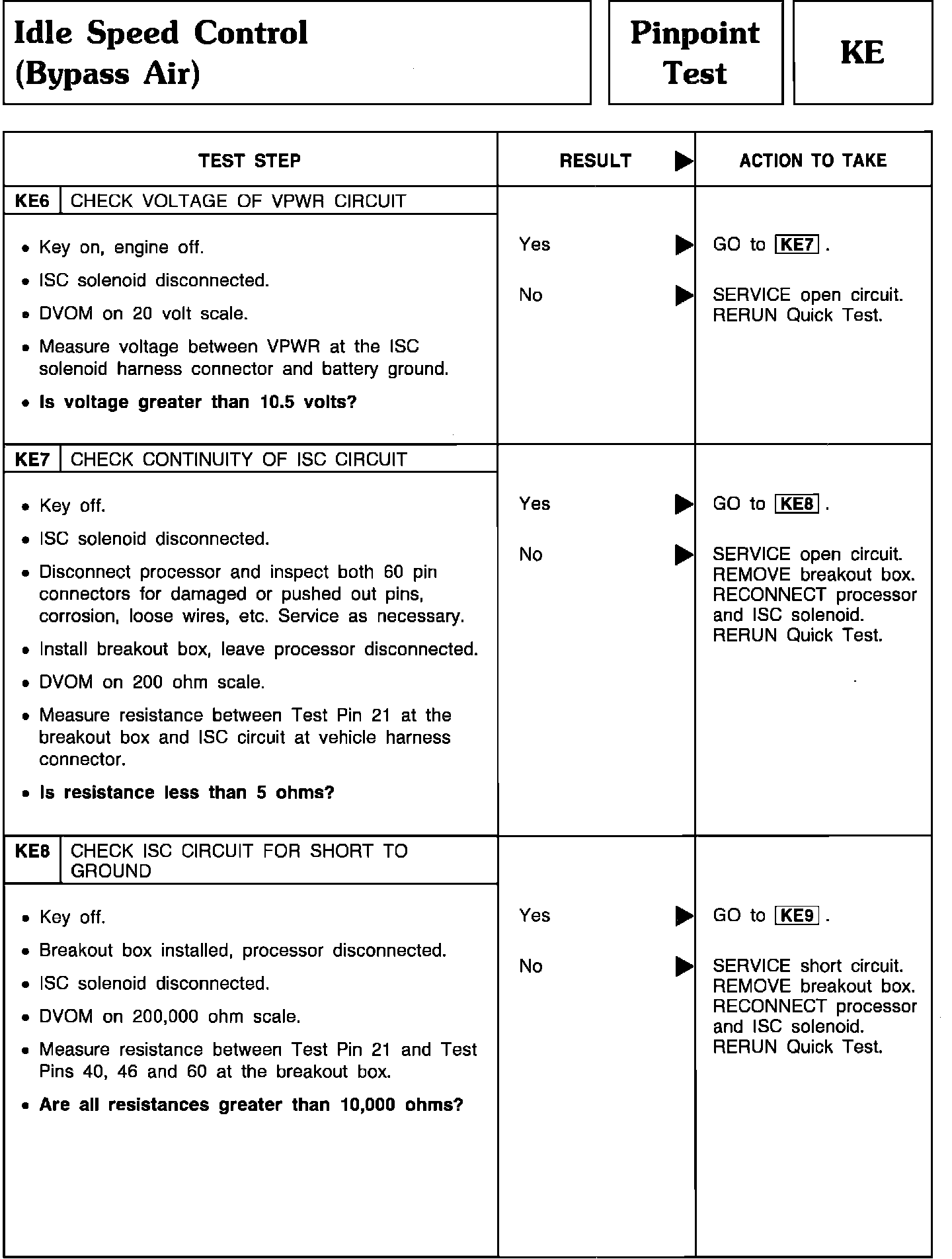 Pinpoint Test KE6 Thru KE8 - Idle Speed Control (Bypass Air):