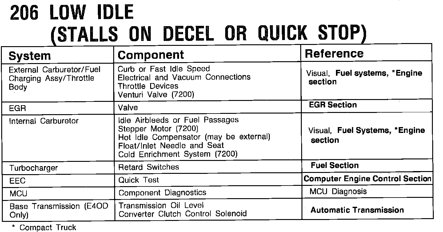 206 - Low Idle (Stalls On Decel or Quick Stop)