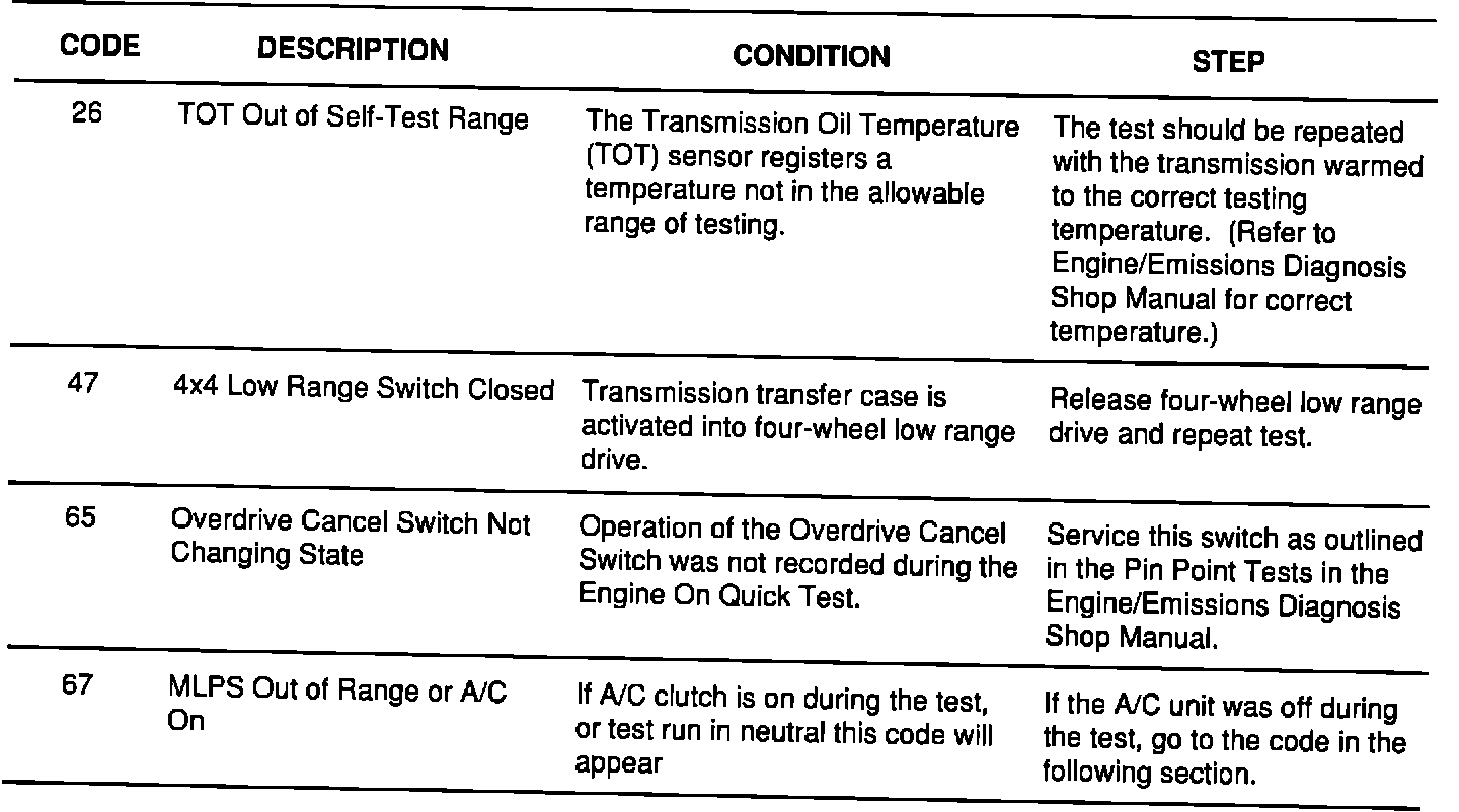 If one of the following codes appear during the Quick Test, service them first before continuing with the transmission diagnosis.