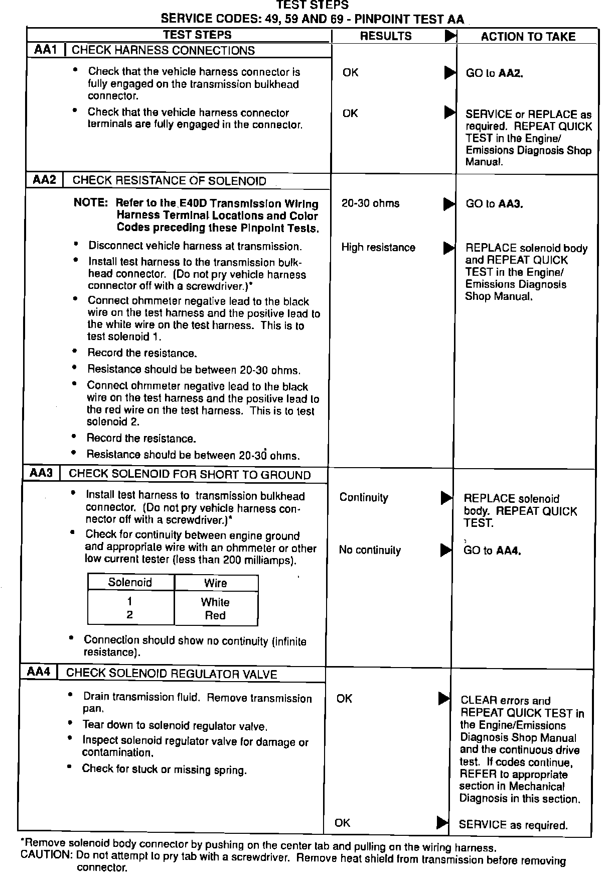 Service Codes:49, 59 and 69 - Pinpoint Test AA