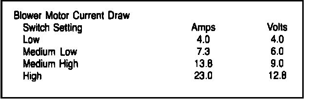 Fig. 38 Blower motor current draw & voltage test chart.: