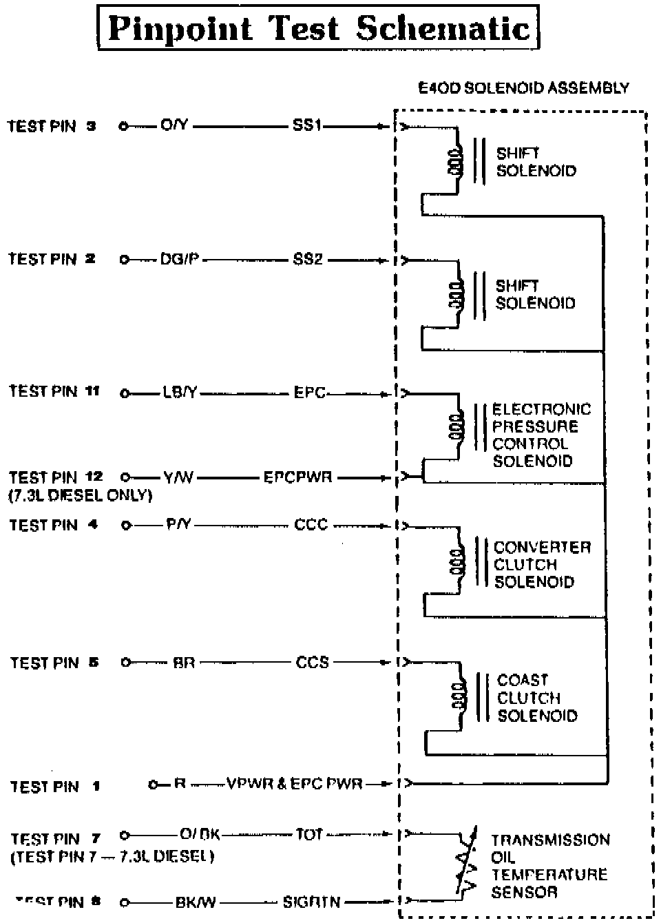 The E4OD can be shifted without the computer by energizing the # 1 and # 2 shift solenoids in the right sequence.
