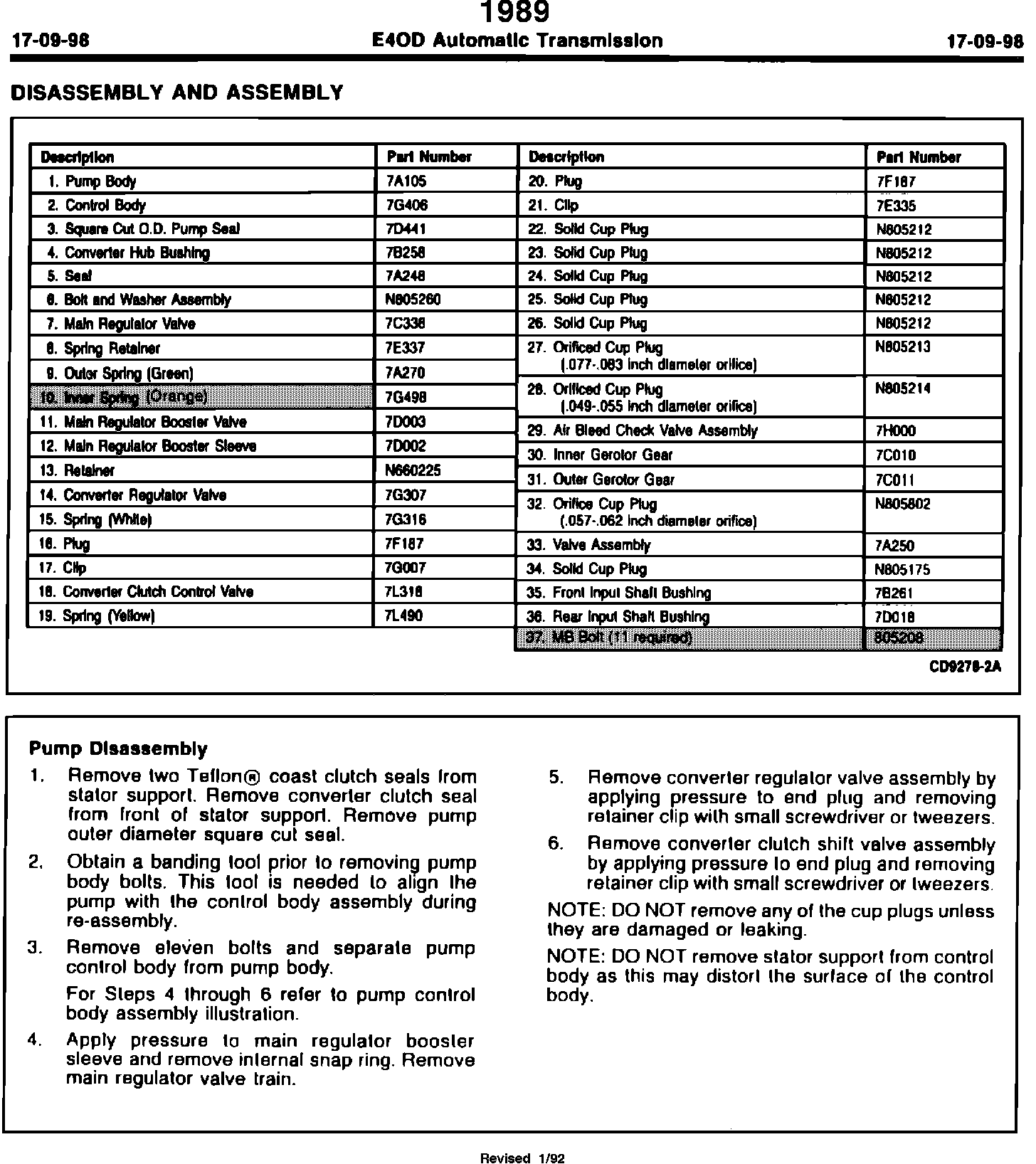 A/T - E4OD Service Specifications/Preautions Revision