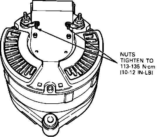 7. Remove three nuts which secure stator leads to terminals and remove stator.