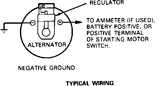 Testing After Assembly Because of the integral regulator used on this alternator, the test block hook-up is very simple, consisting of connecting the positive and negative output leads. If a commercial test block is not available, the test setup shown may be used.