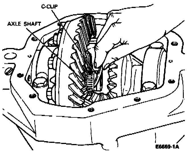 1. Push axle shaft into axle tube, making sure splined shaft end engages side gears. Be careful not to damage oil seals and bearings.2. Push the flanged end of axle shaft towards center of axle and install C-clip. Pull flanged end outward until C-clip locks into side gear.