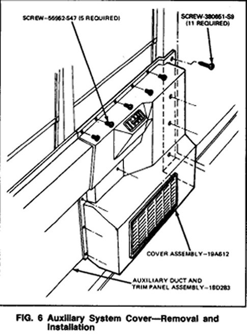 2. Remove auxiliary heater and/or air conditioner cover attaching screws (Fig. 6), and remove cover.