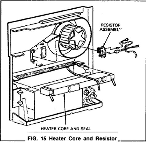 6. Slide the heater core and seal assembly Out of housing slot. Refer Fig. 15.