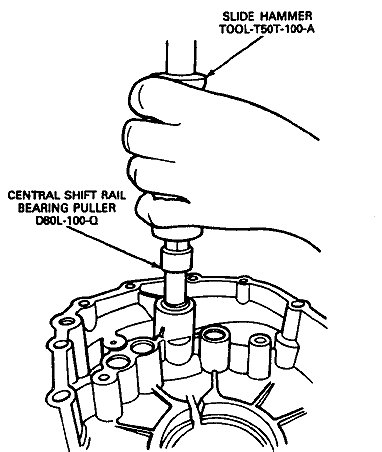 5. If required,remove central shift rail bearing, from rear case Use blind Hole Puller D80L-100-Q and slide hammer T50T-100-A to remove the bearing.