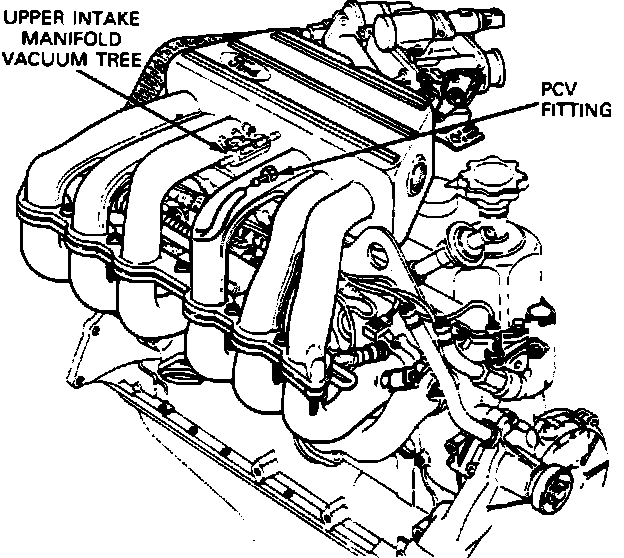 3. Disconnect the PCV hose from the fittings located on the underside of the upper intake manifold.