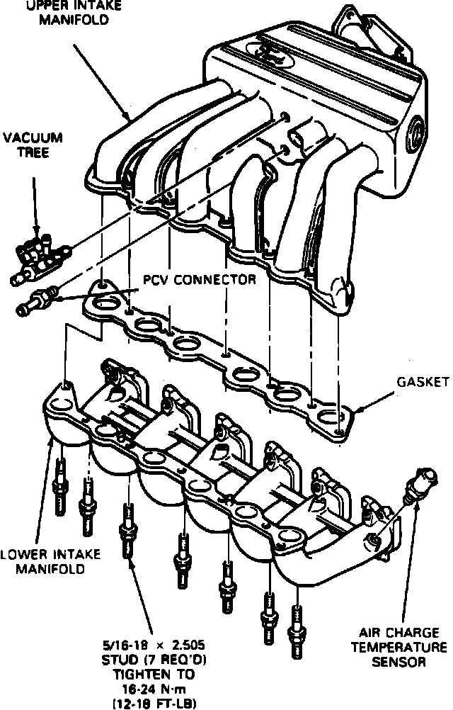 3. Tighten the seven studs, attaching the upper intake to the lower intake manifold to 16-24 Nm (12-18 ft lb).