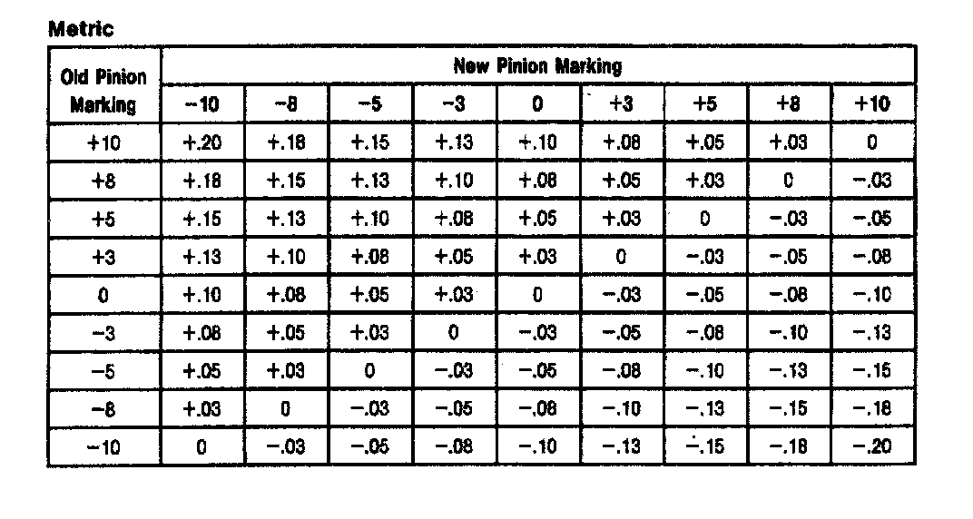 Dana 44 IFS HD, Differential Shim Chart: