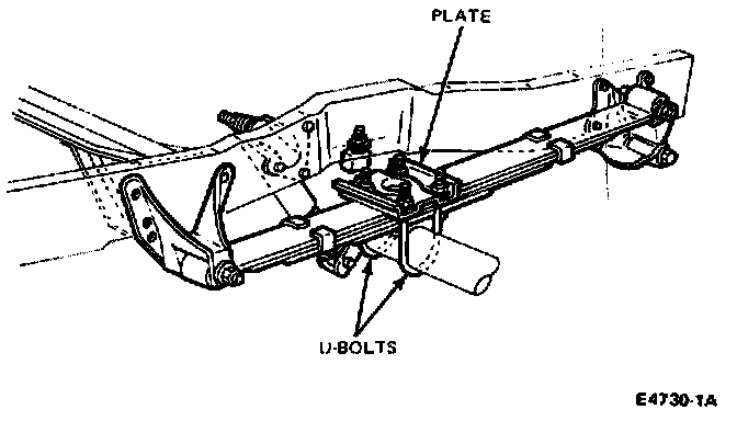 1. Raise the axle housing into position so that the U-bolt plates can be installed. Tighten the U-bolt nuts to the specification. (There are different specifications, depending on the vehicle.)