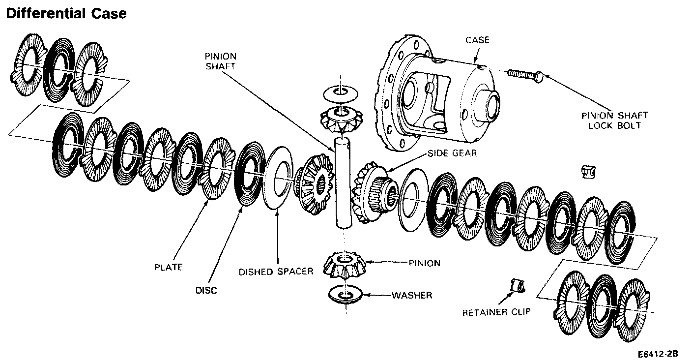 NOTE: The differential bearings need not be removed to overhaul the Ford Limited-Slip Differential. Removal and installation of the side gears, clutch packs, pinion gears and thrust washers require special procedures and tools as described below.