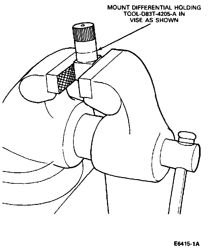 2. Install differential assembly Holding Tool, D83T-4205-A, in a suitable vise. Install differential assembly in the vise with the ring gear side facing up.