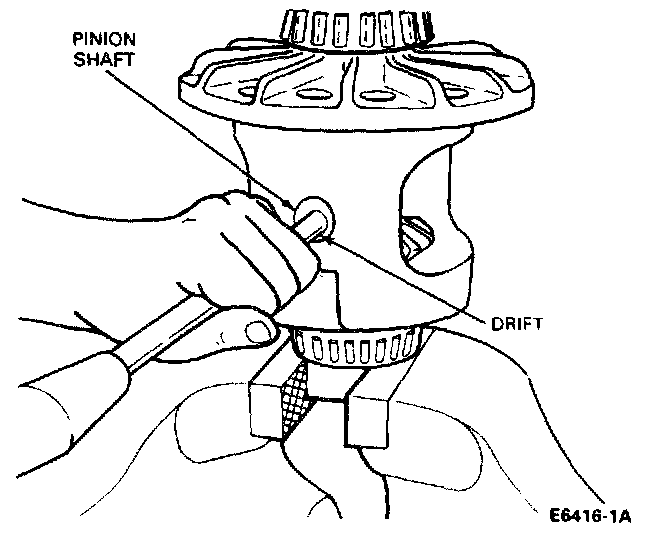 3. With a hammer and drift, drive the pinion shaft from the differential case.
