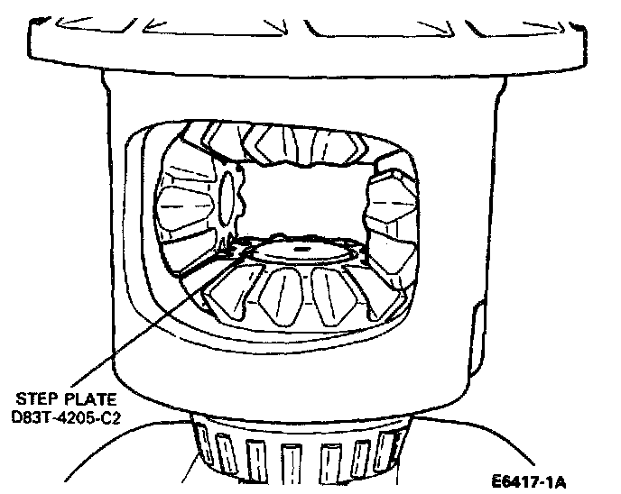 4. Install Step Plate, D83T-4205-C2, in bottom side gear bore. Apply a small amount of grease to centering hole of the step plate.