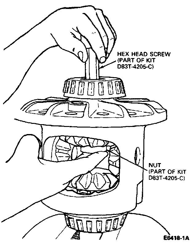5. Install nut in upper side gear. Hold nut in position while installing Hex Screw Tool (part of D83T-42O5-C).