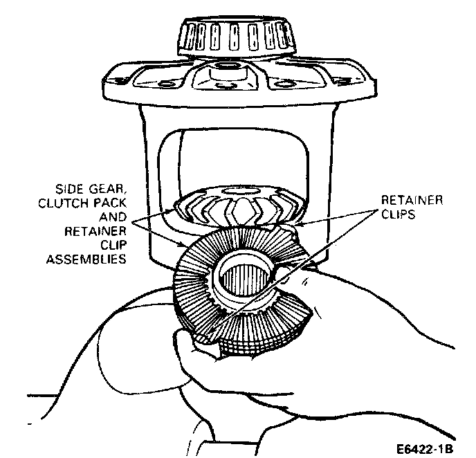 9. Remove the forcing screw and step plates. Remove the side gears, retainer clips and clutch pack assemblies.