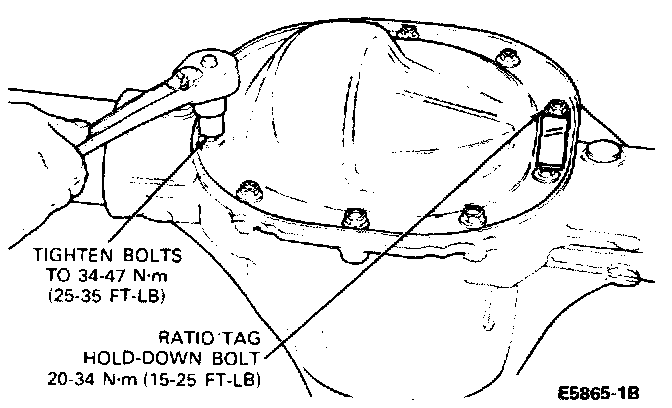 4. Install cover and tighten cover bolts to 34-47 Nm (25-35 ft-lb) as shown. Tighten the cover bolts in a cross-wise pattern to insure uniform draw on cover.