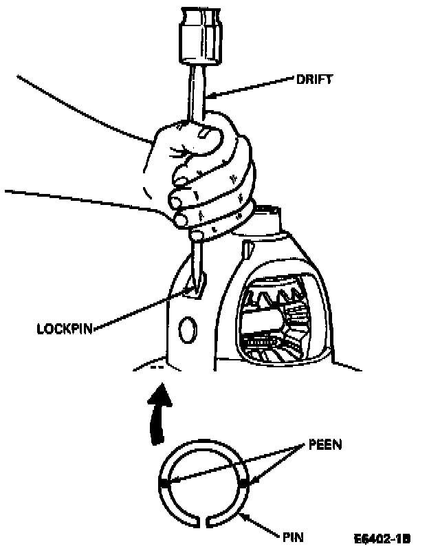 6. Assemble lockpin (roll pin). Peen metal of case over pin to lock in two places 180° apart.