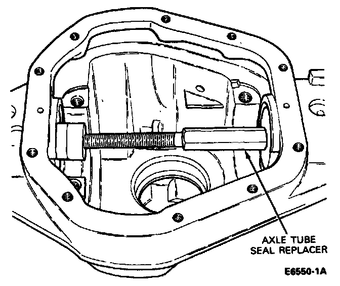 8. Place the inner axle seals in the axle tube housing. Press both seals in at the same time with an appropriate installation tool. Make sure the seals are pressed in straight and not cocked in the bore. Coat the lips of the seals with Long Life Lubricant, C1AZ-19590-BA (ESA-M1C75-B) or equivalent.
