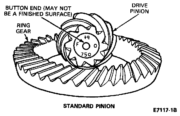 On the backface of each pinion, there is etched a plus + number, a minus - number, or a zero 0 number which indicates the best running position for each particular gear set. This dimension is controlled by the shimming behind the inner pinion bearing cup.