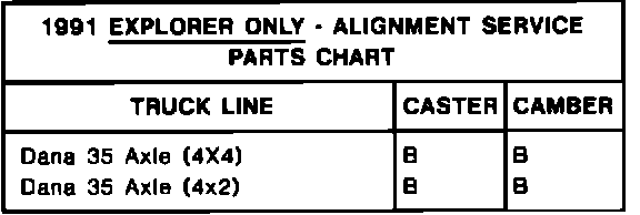 ACTION: If Light Truck Shop Manual diagnostics indicate the need for front alignment adjustment, use the following caster/camber adjustment parts and alignment specifications.