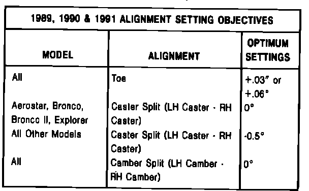 90ford18 SUSPENSION - FRONT - ALIGNMENT SPECIFICATIONS