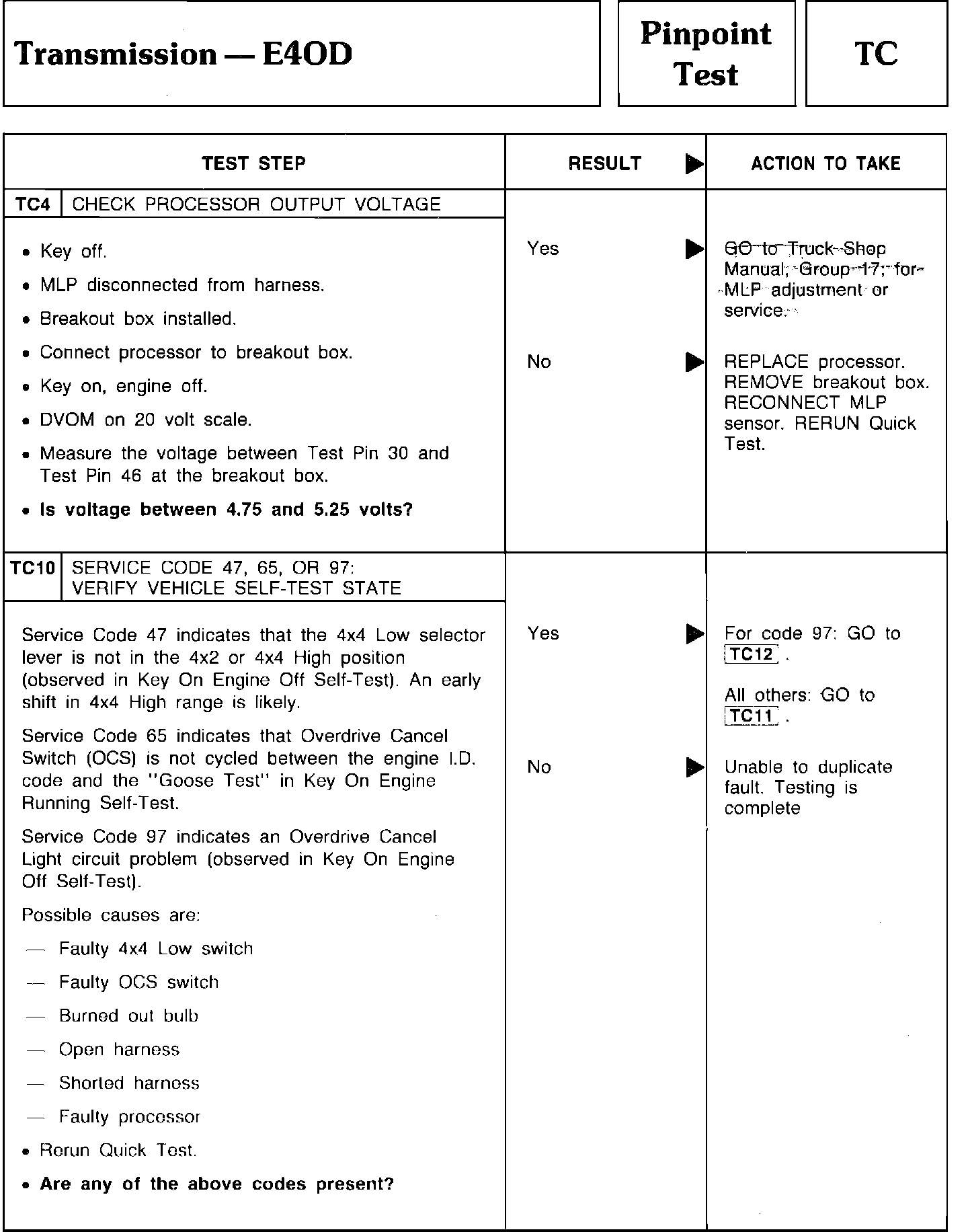 Pinpoint Test TC4 & TC10 - Transmission E4OD: