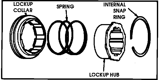 10. Remove internal snap ring from lock-up collar, then remove lock-up hub and spring from collar, Fig. 12.
